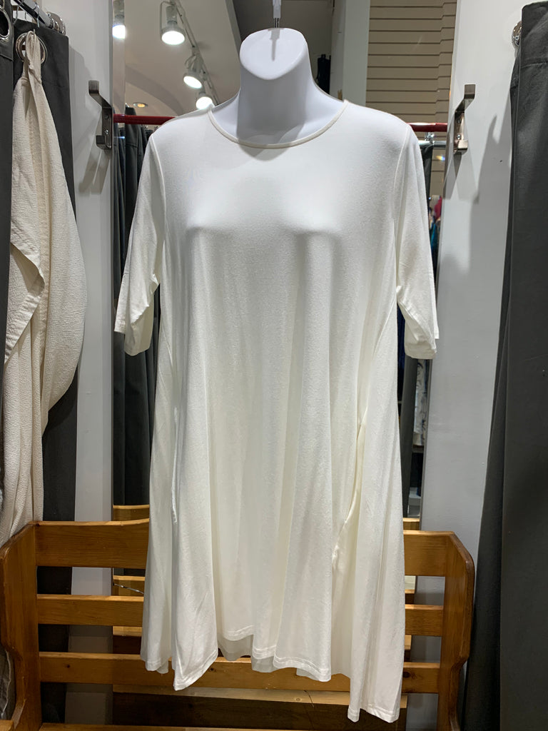 The Orange by Fashion Village Hi/Lo Tunic is one of its best sellers. It is made in a heavier bamboo fabric. This tunic has a crew neckline with front side pockets and short sleeves. It can be worn as a dress or a tunic.