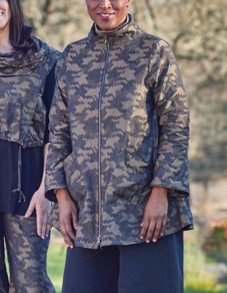 The Bryn Walker Marz Jacket is made in the famous Bryn Walker Crunch Fabric. It features a full length front zipper that zips up to a mock neckline. It has loose silhouette with long sleeves. It is tunic length with 2 front pockets.