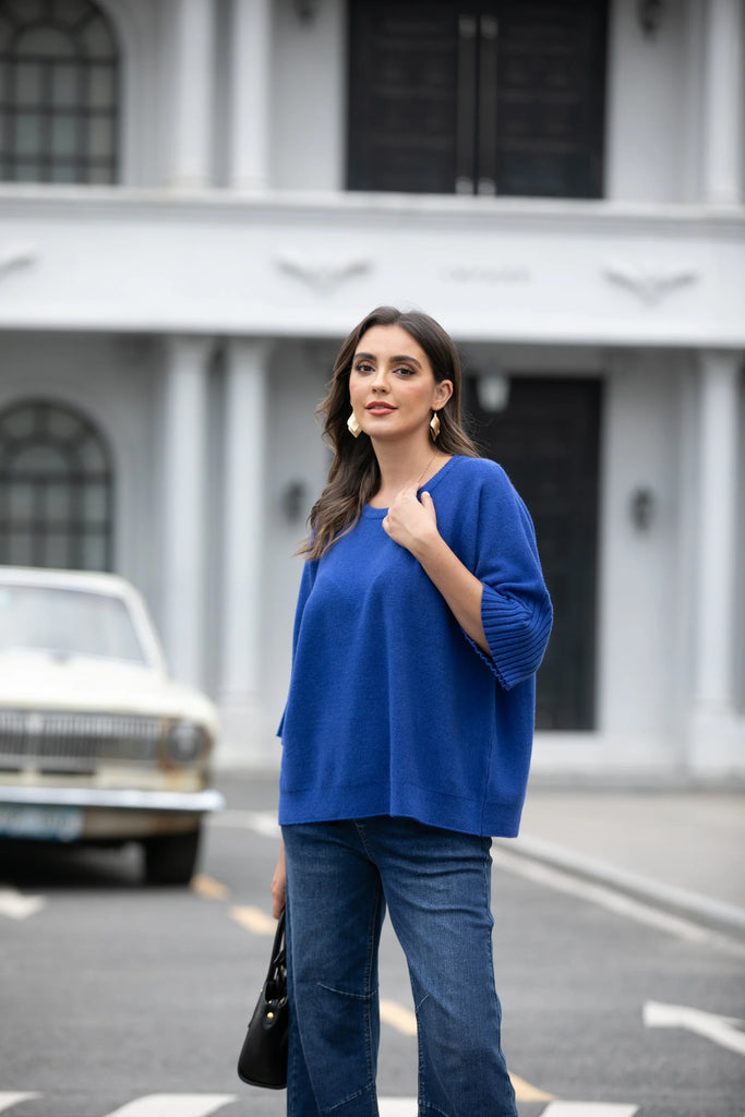 Orange by Fashion Village, 2060 Cozy Sweater Top, Cobalt