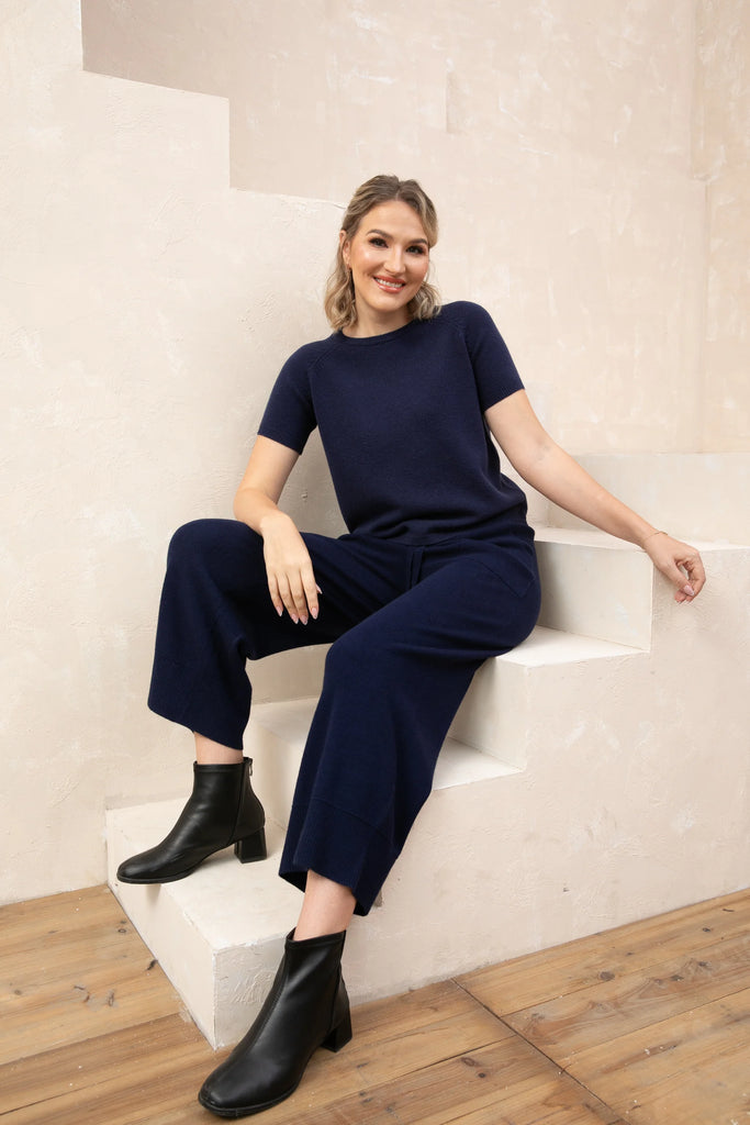 Orange by Fashion Village, J-5018 Knit Comfort Pants, Navy