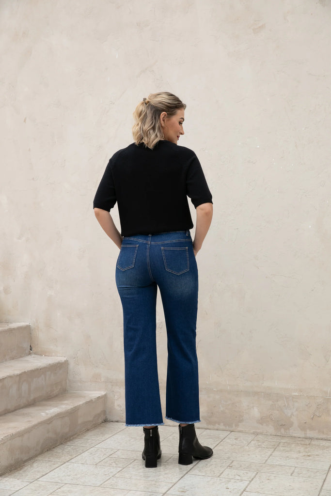 Orange by Fashion Village, JNC-15, Bamboo Wide Leg Jeans w/ Fringe Hem, Dark Wash