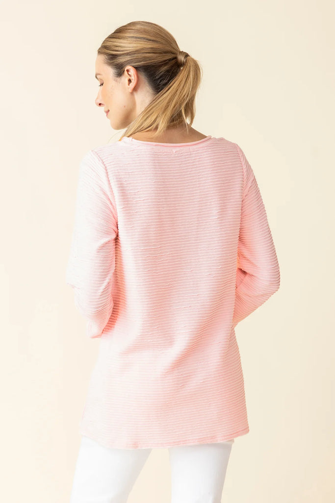 The Habitat Chelsea Tunic is a cotton lovers dream. Comfort and texture combine to create a grooved fabric with a subtle hi-lo tonal effect. A great transitional piece to dress up or down. It is tunic length with front slits and princess seams. It features rolled edges and a scooped neck.